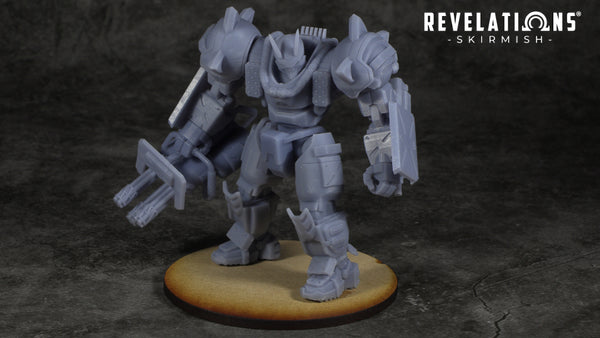 Product Description: - Includes enough parts and bases to assemble 1 Juggernaut WarMech unit for Revelations: Skirmish. - This product comes unpainted and unassembled. It was made from resin and manufactured in the U.S.A. through 3D printing. Handle with care and keep out of direct UV light. - This product contains small parts and is not intended to be used by anyone 12 or under.